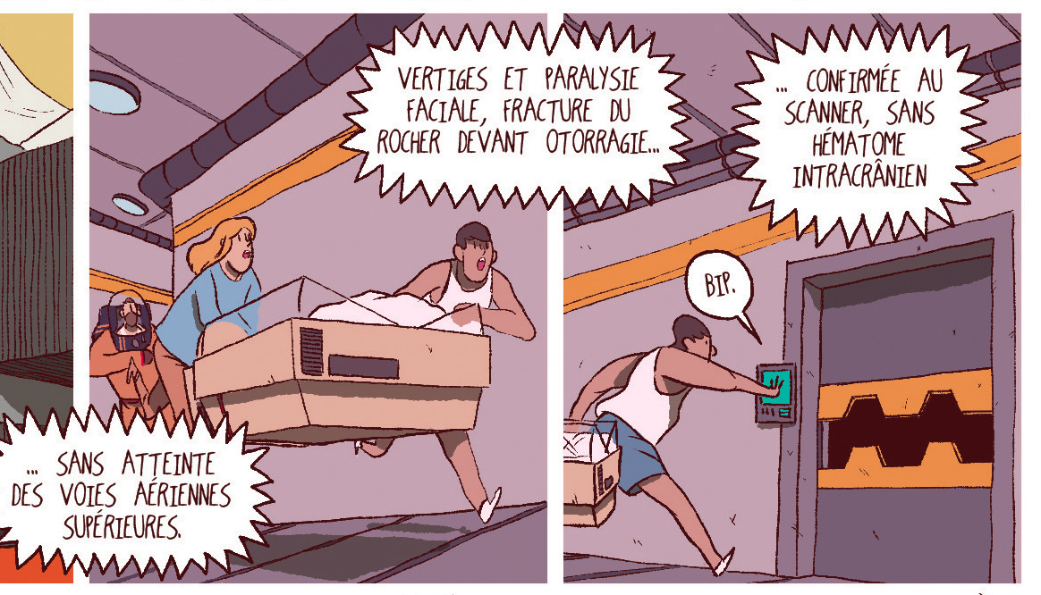 This exhibition aimed to illustrate the work of Inserm and CEA‘s researchers, using the machines they invent or manufacture as a starting point. The goal was to create a collective imagination of the world of research and its challenges for our future. Twelve large comic book pages (120*80 cm) for twelve illustrators, each one tackling a different theme.